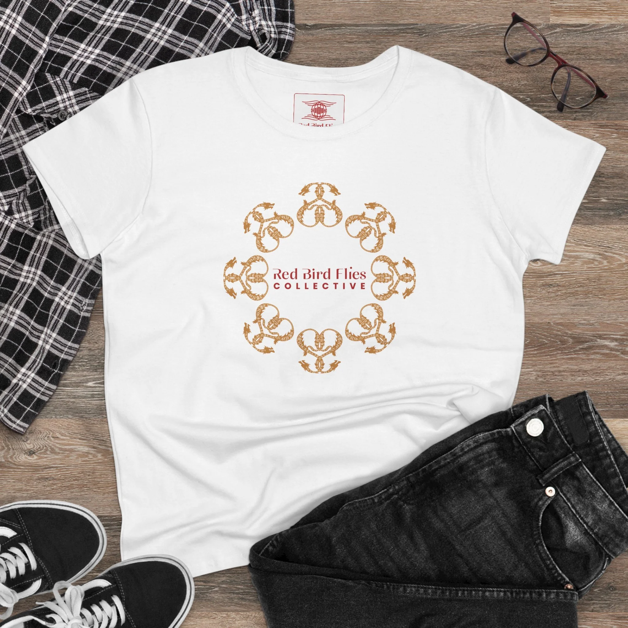 Red Bird Flies Collective Women's Tee — Dragon Floral Design